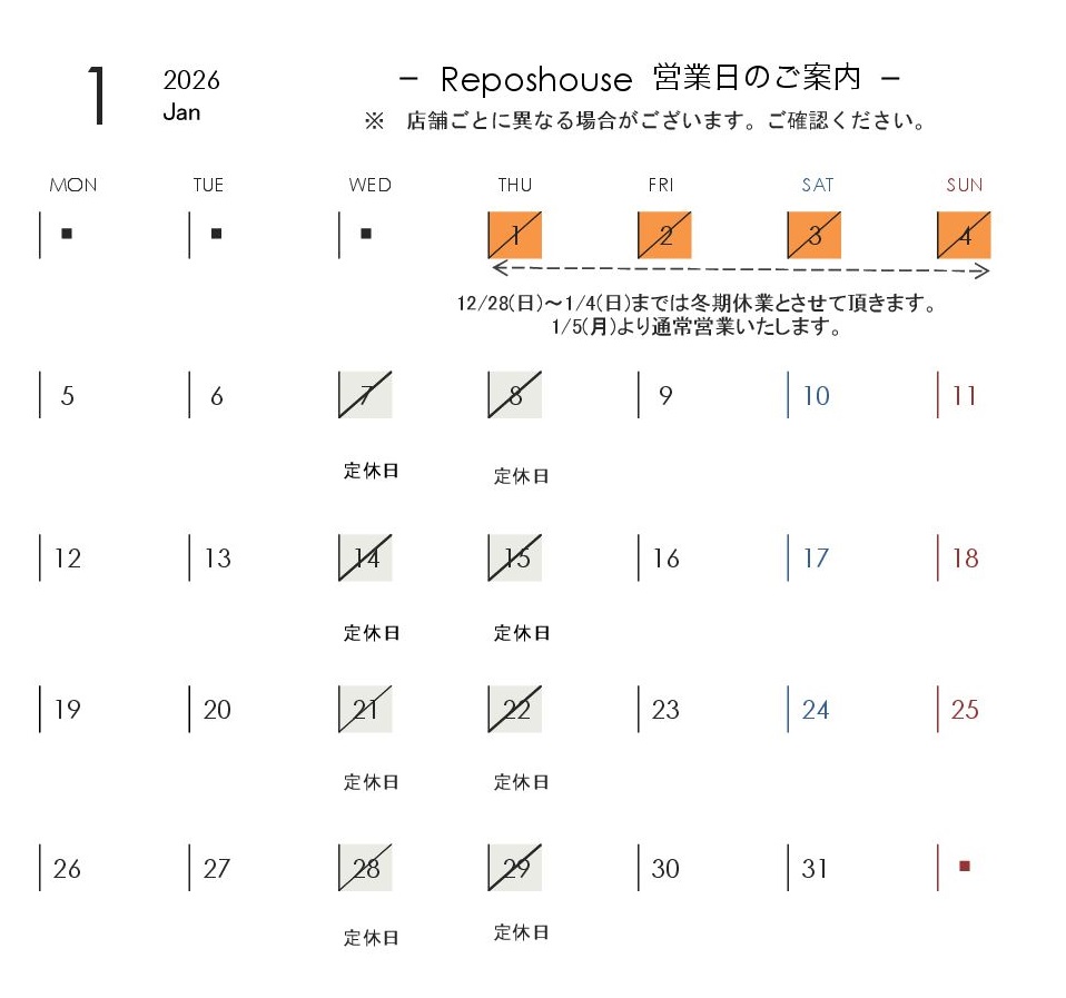 <1月>営業日のご案内