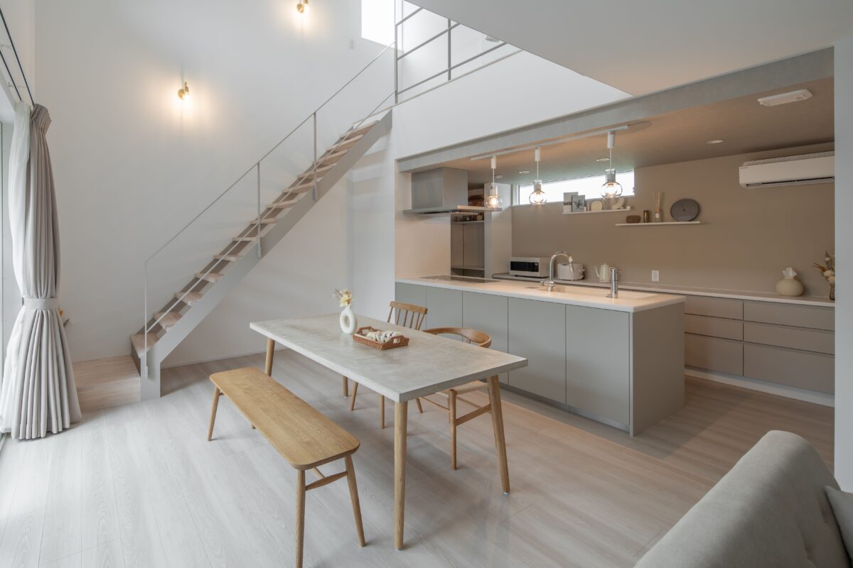 ダイニング・キッチン・階段・吹き抜け/湖南市 H様邸