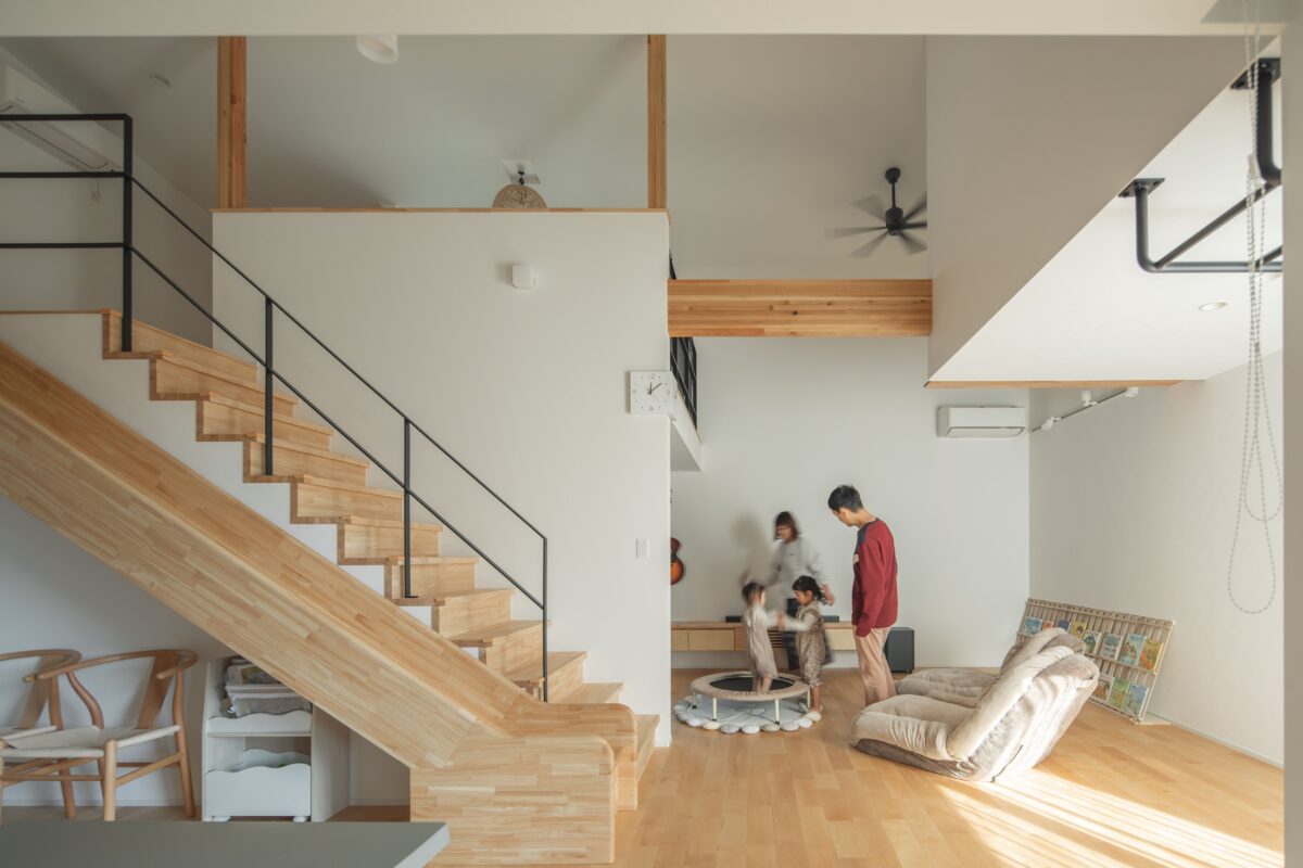吹き抜け・リビング・階段・滑り台/大津市 I様邸