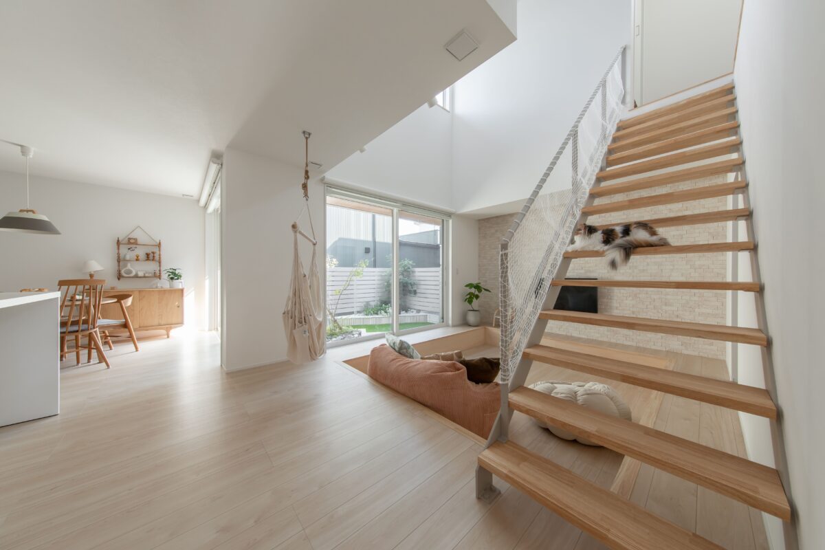 吹き抜け・LDK・階段/栗東市 H様邸