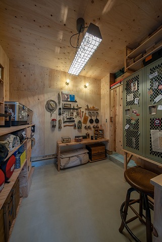ガレージからキャンプ部屋、パントリー~キッチンへとつながる動線は、アウトドア支度の便利さを考えて設計。