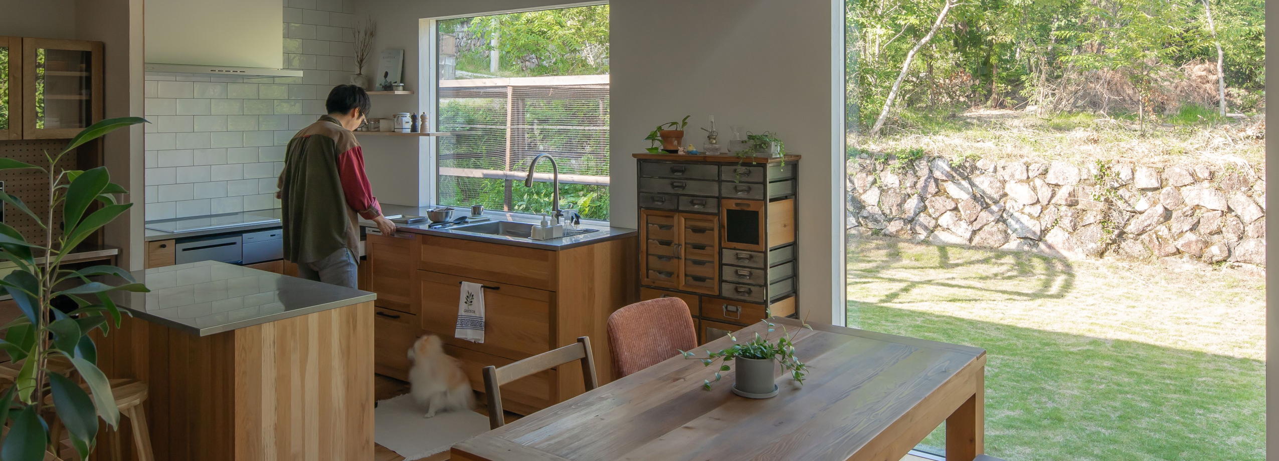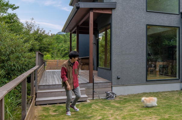 その両方をかなえる家づくりの拠点は、キャンプや愛犬との暮らしを楽しめ、気兼ねなく過ごしたいという奥さまの希望にもぴったりな自然に囲まれた環境。