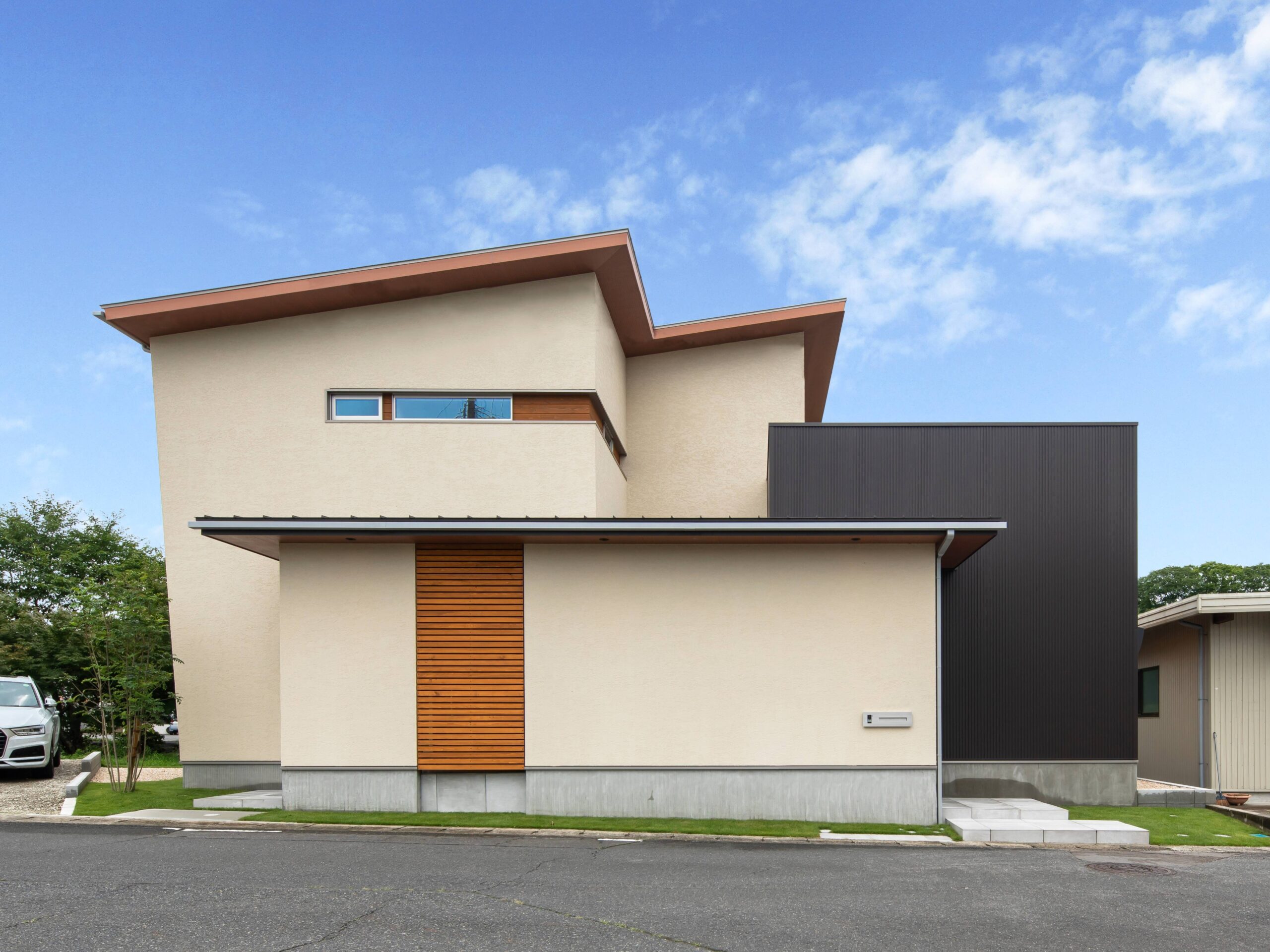 美しさや安定感を感じるといわれる、黄金比を用いた外観デザイン。 個性を発しながらも周囲の景観となじむ、バランスの整った住まいです。