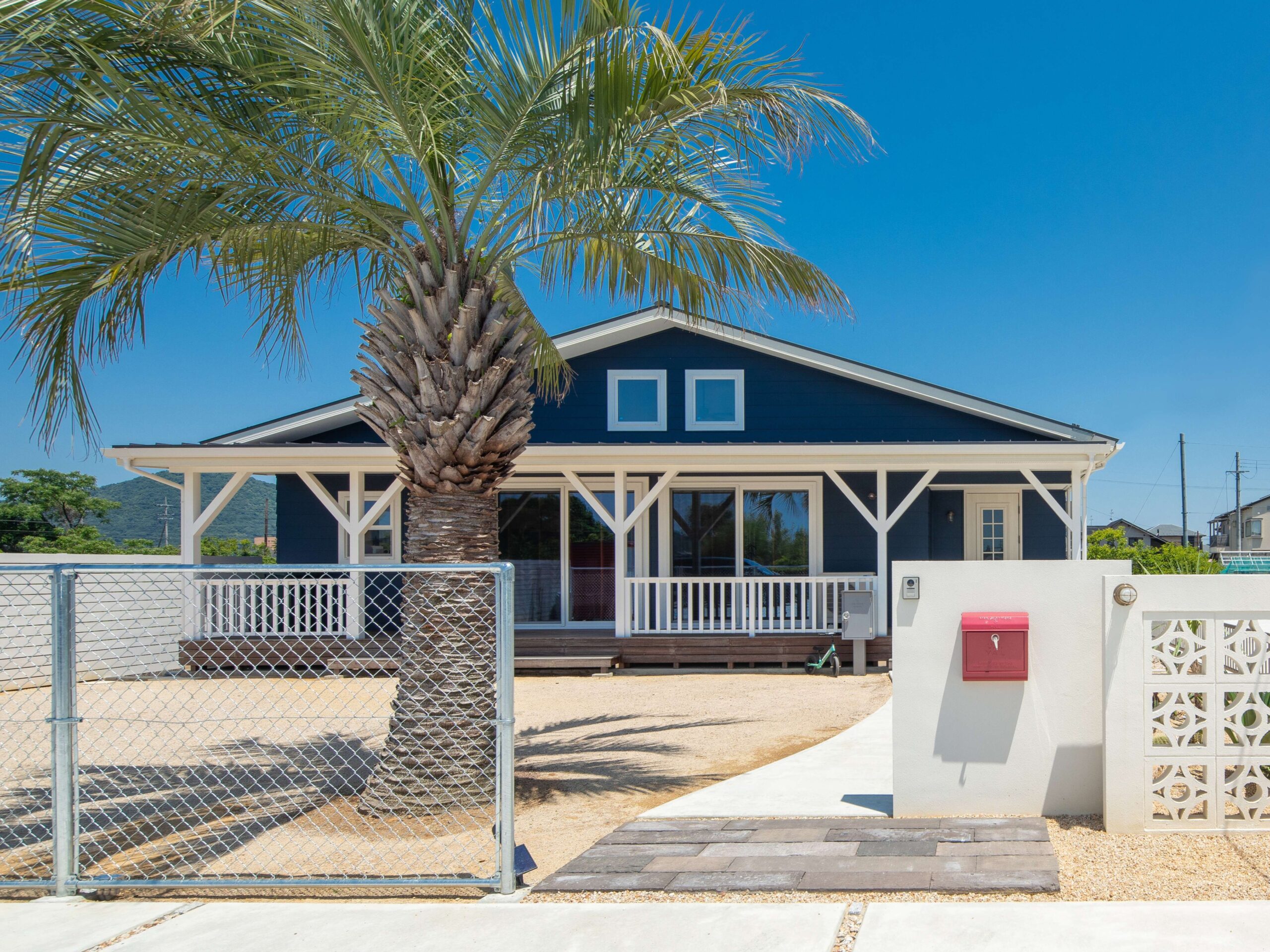 シンボルツリーのヤシの木が家族の成長を見守る家。